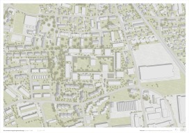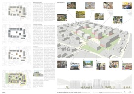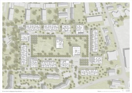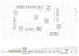 Der Bostudenzelg ist eines der letzten zusammenhängenden Areale in Thun. Derzeit als Ackerfläche genutzt, die von Mehrfamilienhäusern und Gewerbebauten umspült wird, sollen dort 400 bis 600 neue Wohnungen entstehen. Bisher fehlt im Süden der Stadt eine stadträumliche, identitätsstiftende Geste. Auf dieses Defizit wird mit dem neuen «Freiraum» reagiert. Er wird nicht nur Mittelpunkt für die neue Siedlung, sondern ein Ort der Identifikation für das ganze Schoren-Quartier. Durch die periphere Anordnung der Bauten spannt sich in der Mitte des neuen Quartiers dieser Freiraum auf. Die Erschliessung sämtlicher Gebäude erfolgt ringförmig vom zentralen Park und ist als breite, multifunktionale autofreie Zone ausgebildet. Sie wird angereichert durch Spiel- und Aufenthaltsbereiche, Vorplätze, Gärten und Werkplätze. Ebenfalls an diesem Ring – jedoch in der Nähe des Haupt-Arealzugangs – soll sich ein Quartierplatz befinden. Auch hier sollen in den Erdgeschossen gemeinschaftliche und öffentliche Nutzungen untergebracht werden, beispielsweise eine Velowerkstatt, Spitex oder eine Café Bar. Prägend für den inneren Freiraum sind die den Erschliessungsring begleitenden Bäume, welche an wichtigen Stellen zu Baumdächern ausgeweitet werden. Der allmendartig genutzte Freiraum soll sich nach und nach mit der Siedlung verdichten, die Bewohner sollen an diesem Prozess teilhaben und mitgestalten dürfen. Rings um die neue Siedlung sollen Obstbäume zu den angrenzenden Siedlungen vermitteln. Ein feinmaschiges Netz aus Fusswegen wird diesen Grüngürtel durchwirken und den inneren Parkraum allseitig mit dem umgebenden Quartier verknüpfen. So soll die Siedlung klar nach aussen kommunizieren, dass sie ein öffentlicher Raum für alle sein möchte. Kindergarten, Kita, Quartierbüro und weitere wichtige öffentliche Nutzungen werden in den Erdgeschossen der Punkthäuser im inneren Freiraum oder an der Siedlungszugängen in den Ecken der Bebauung angelegt.