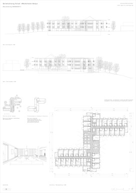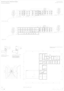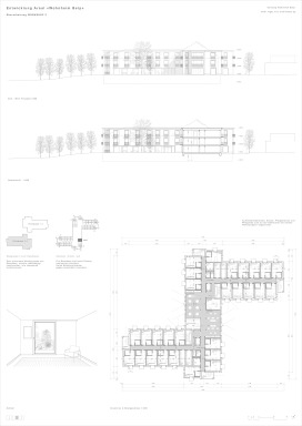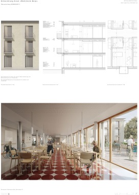 An der Seftigenstrasse südlich des ehemaligen Spitals soll für die Stiftung Wohnheim Belp ein Ersatzneubau entstehen, welcher Rücksicht auf die exponierte Lage nimmt und sich gut in das bestehende Ortsbild integriert. Der Neubau ist gegenüber dem Dorf in einer erhöhten Lage und daher aus dem Gürbetal weither ersichtlich. Der Städtebau des Neubauprojektes lehnt sich stark an das bestehende Gebäude an und ergänzt dieses mit einem zusätzlichen Flügel. Es entsteht ein Querriegel mit jeweils rechtwinklig abgezweigten Flügeln, an welche vier Außenräume mit verschiedenen Nutzungsqualitäten angelehnt sind. Im Osten sind dies die Terrasse des Restaurants mit Garten, im Westen ein Sitzplatz mit Fernsicht, im Süden der aufgewertete Spielplatz und im Norden der Anlieferungsplatz. Durch die Aufschüttung des Terrains im Osten integrieren sich Gebäude und Freiraum optisch gut in die Umgebung. Der Haupteingang wird zentral angeordnet. Im Erdgeschoss befinden sich die öffentlichen Räume wie die Verwaltung, das Restaurant und die gemeinschaftlichen Aufenthaltsräume. Von hier sind die beiden ost - und westseitigen Freiräume angebunden. Im Aussenraum entsteht ein Fusswegnetz welches an den bestehenden Hangweg anschliesst und um das Gebäude herum verläuft, wodurch die verschiedenen Freiräume von Aussen her erschlossen und verbunden sind. Attraktive Staudenbepflanzungen und einzelne Sträucher bieten den Nutzenden geschützte Aufenthaltsorte. Die Staudenbepflanzungen werden mit Blumenwiesen ergänzt. Obstgehölze sollen den bestehenden Hangweg begleiten. Diese Vegetationsstruktur fördert neben der Atmosphäre auch die Biodiversität im Areal. Die Parkierung und Anlieferung wird oberirdisch im Norden entlang der Parzellengrenze angeordnet.