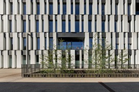 Das Areal bietet insgesamt rund 2000 Arbeitsplätze, davon 840 im neuen Gebäudeteil. Der Aussenraum schafft vielfältige Aufenthaltsbereiche mit sonnigen und schattigen Plätzen für die Mitarbeitenden. Die Umgebung beinhaltet mehrheitlich extensiv genutzte und extensiv unterhaltene Flächen. Unterschiedliche, mit vorwiegend einheimischen Arten angelegte Wiesenflächen und Staudenrabatten in verschiedenen Expositionen garantieren eine grosse ökologische Vielfalt und Nischen für mannigfaltige Fauna und Flora: Von der humusierten Wiese zu Magerwiesen, von Trockenstandorten zu teilweise überfluteten Flächen in den Retentionsanlagen. Eingepflanzte Zwiebelpflanzenfelder sorgen bereits im Frühjahr für Blütenpracht. Die mäandrierenden Eichenpflanzungen durchziehen das gesamte Areal, binden es zusammen und spenden Schatten in den Aufenthaltbereichen für die vielen Mitarbeiter. Bereiche mit einheimischen Sträuchern und Heistern ergänzen das räumliche ökologische Repertoire.