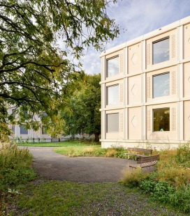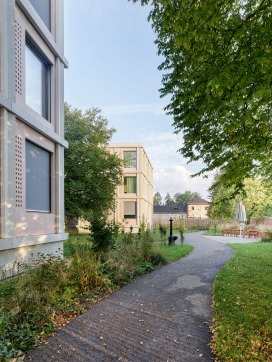 Das kulturelle Erbe einer über 130-jährigen Geschichte wird mit einem verantwortungsvollen Umgang gegenüber den bestehenden, historischen Strukturen sorgfältig und differenziert weiterentwickelt. Eine klare Setzung neuer Baukörper sowie eine Freiraumgestaltung, die den Ort präzise interpretiert, ermöglichen eine behutsame Transformation und Weiterentwicklung. Der wertvolle Baumbestand bleibt dabei vollständig erhalten, während ein an den historischen Gestaltungsplan angelehntes Wegnetz die Geschichte des Ortes respektvoll aufnimmt und weiterträgt. Geschützte Therapiegärten sowie unterschiedliche Aufenthaltsbereiche werden durch thematisch abgestimmte Bepflanzungen räumlich gefasst und in vielfältige Zonen gegliedert. Der leitende Ansatz des Vernetzens und Weiterwebens zeigt sich in der Abfolge und den fein abgestimmten Sequenzen der Frei- und Außenräume ebenso wie im sensiblen Umgang mit dem Bestand. Das PZM mit seinen Außenanlagen wird entlang des Masterplans 2040 kontinuierlich denkmalpflegerisch weiterentwickelt, ökologisch gestärkt und an zukünftige klimatische Anforderungen angepasst.