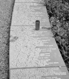 Das bestehende Gemeinschaftsgrab ist dem landschaftlichen Teil des Friedhofes zugeordnet. Es ist Bestandteil des Wald- und Lichtungsgürtels um das zentrale Rasenfeld in der Ebene und liegt am Fuss des Hügelzugs. 1878 wurde der Schosshaldenfriedhof nach dessen Verlegung vom Rosengarten in die Schosshalde eröffnet. Der im klassizistischen Stil gebaute Teil unterscheidet sich klar zum landschaftlichen Teil (von Franz Vogel sen., 1952 erstellt) im ehemaligen Schosshaldenwald. Am Fusse des Hügelzuges, in der Lichtung des Waldgürtels, liegt, mit hohem Stimmungswert, wie in einem wunderschönen Gefäss, das neue Gemeinschaftsgrab. Das Bestattungsfeld ist gegen Norden kontinuierlich abgesenkt und an seinem tiefsten Punkt von einem geschwungenen Natursteinband gehalten. Eingestreute und bodenbündig verlegte Natursteinplatten bezeichnen die Dimension der Bestattungsfläche. Am tiefsten Punkt der geneigten Fläche liegen sie komprimiert, lockern sich gegen den Hügelzug hin mit dem Ansteigen der Grabflächen gegen Süden langsam auf. Auf dem Natursteinband steht für jeden Verstorbenen fortlaufend eine konstante Breite für die Namensnennung zur Verfügung. Die Namensinschrift ist sowohl für Urnenbestattungen im Grabfeld als auch für Beisetzungen in der Gruft möglich.