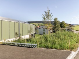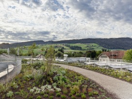 Die neue Schullandschaft Stalden mit einem Schulhaus für 24 Klassen, mit Administrations- und Lehrerbereichen, sowie Aula und Tagesbetreuung. Im Vordergrund steht, einen abwechslungsreichen und vielfältigen Lebensraum für Kinder, Tiere und Pflanzen zu schaffen. Für den Schulsport stehen eine 100m-Laufbahn, eine Weitsprunganlage sowie ein Fussballfeld zur Verfügung. Der bestehende Allwetterplatz kann für Ballspiele genutzt werden. Die Begegnungsmöglichkeiten für die einzelnen Stufen sind gross: zusätzliche intimere Zonen und Rückzugsmöglichkeiten ergänzen diese. Im Innenhof entsteht eine kompakte «Miniaturlandschaft» mit Hügeln, Senken sowie Kies- und Grünflächen. Dieser Naturspielplatz lädt die jüngeren Schülerinnen und Schüler zum Erkunden, Spielen und Entdecken ein. Sträucher und Pflanzentunnel bieten Rückzugsorte, in den Sand- und Kiesbereichen kann gebaut und gegraben werden. Die Anbindung an den Bestand wird über die Ausgestaltung der Freiräume erreicht, so verknüpft sich der Neubau über ein mäandrierendes Wegsystem mit der Umgebung. Das begrünte Schulhausdach bietet Ausblicke in die Landschaft und Platz für Unterricht im Freien. Trockenheitsliebende Pflanzen und Sträucher sollen hier wachsen. In den umliegenden Grünflächen werden verschiedene Aufenthalts- und Spielplätze angelegt. Die Freiräume sind in ihrer Ausbildung stark von einer naturnahen Gestaltung geprägt und ein fein ausgearbeitetes Baumkonzept verwebt die Anlage mit der Umgebung. Wertvolle Gehölze wie Linden, Weiden und Obstbäume werden gepflanzt. Eine Wildhecke schliesst das Gelände nach Norden ab. Die neugestaltete Schulhausumgebung schafft somit auch einen abwechslungsreichen und naturnahen, ökologisch wertvollen Lern- und Erlebnisraum für Alle.