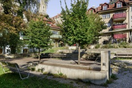 Der Freiraum zu den Wohnbauten am Bubenbergrain und Schifflaube ist geprägt vom Zugangsweg der Zonierung zu den einzelnen vollumfänglich geschützten Wohnbauten aus den 1950er-Jahren und dem leicht terrassierten Hof. Auf dieser primären Struktur wurde das Freiraumkonzept aufgebaut. Die vorhandene Topografie, bestehende Mauern und die Verbindungstreppe wurden ins Konzept integriert. Mit wenigen weiteren niedrigen Stützmäuerchen wurde das Gelände fein abterrassiert und mit Kinderspiel und Naschgarten ergänzt. Mit einem neuen Brunnen in Anlehnung an den Bestehenden, Veloabstellplätzen und Velodach, treppenfreien Verbindungswegen und verschiedenen einheimischen artenreichen Wiesen-, Stauden- und Baumstrukturen wurde das Wohnumfeld an die heutigen Anforderungen angepasst, ohne den Charakter der 1950er-Jahre zu negieren. Der Freiraum ist eingebettet in den Naturraum des Aarehangs, welcher durch einheimische Hecken- und Wiesenstrukturen geprägt und Lebensraum für zahlreiche Insekten, Vögel und der Mauereidechsen ist. Dabei sind die wesentlichen Elemente erhalten und verstärkt worden. Die Böschung zwischen Zugangsweg und den Wohnbauten am Bubenbergrain wurde als Halbtrockenrasen angelegt. Der Wiesenabschnitt unterhalb des Wegs ist als Blumenrasen angelegt. Er wird öfter gemäht, damit er als Spiel- und Aufenthaltsfläche genutzt werden kann. Die niedrigen Stützmäuerchen sind aus Stampfbeton erstellt. Es gibt in diesen Mauern schmale Öffnungen, Verbindungen zum dahinterliegenden Erdreich, welche den Eidechsen Schutz und Unterschlupf bieten. Die befestigten Flächen sind mehrheitlich mit nicht versiegelten Belägen wie Mergelflächen und, dort wo nötig, mit einem durchlässigen Saibrobelag erstellt worden. Durch dieses Konzept ist ein zusammenhängender Lebensraum für Flora und Fauna, welcher an die Strukturen des artenreichen Aarehangs anknüpft, entstanden.